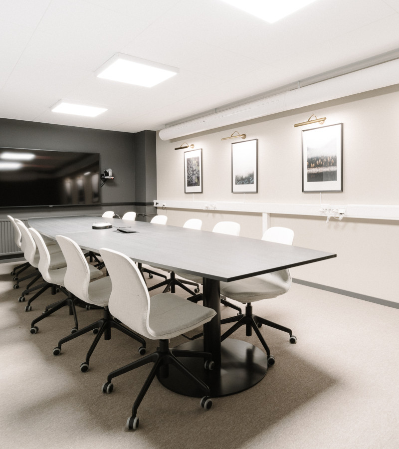 Vi har 2 stycken mötesrum som rymmer upp till 8 personer vardera, samt ett stort konferensrum som går bra att vara 12-16 personer i. Samtliga rum är utrustade med all teknik du behöver för att hålla i ett proffsigt möte.